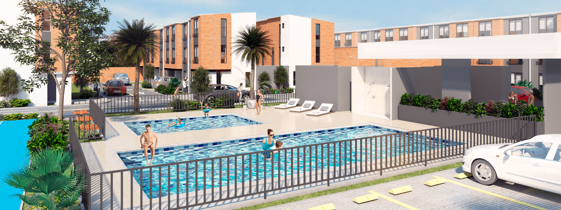 El conjunto contará con una portería con acceso vehicular y peatonal, oficina de administración, salón social, espacio para gimnasio, piscina para adultos y piscina para niños, juegos infantiles y cancha múltiple.