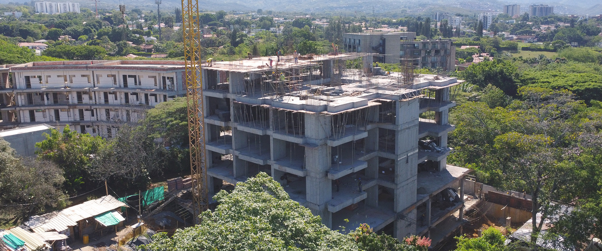 El proyecto se conforma por 1 torre de 13 pisos, con un gran patio central, el cual, además de servir como zona de estancia y encuentro en el primer piso, brinda una de las mejores vistas hacia los Farallones y en la inmediatez, los hermosos samanes ubicados al interior del lote.